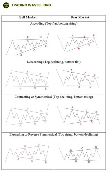 There are 4 types of triangles in Elliott Wave Theory (as shown below):