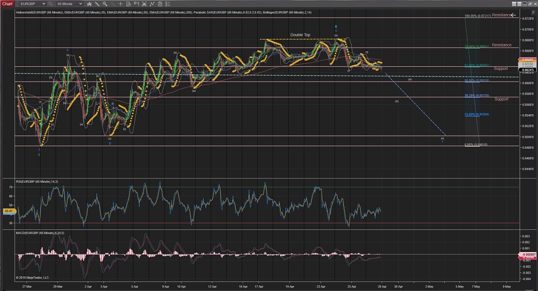 EURGBP is been moving in a corrective manner for a while on Wave ii and completed at the %76 retracement with a double top.