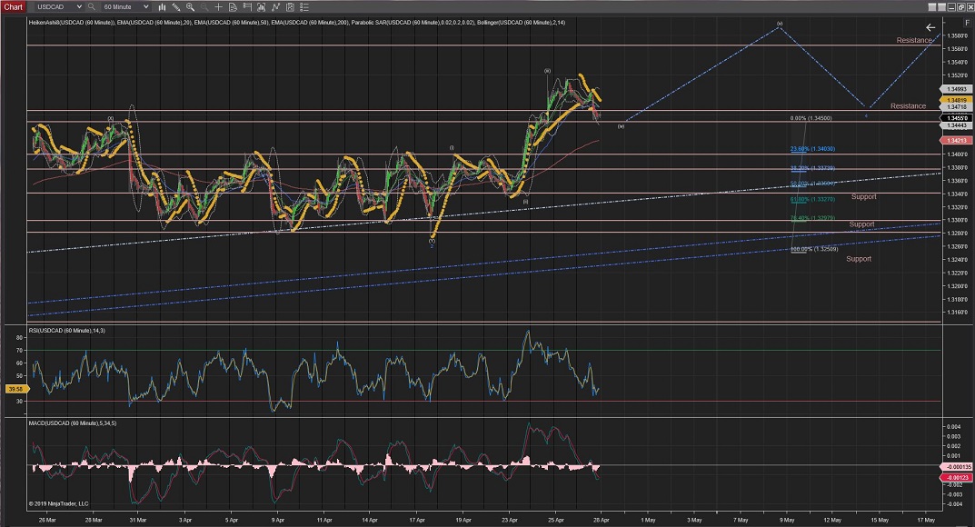 Once Wave (iv) is completed, Wave (v) should carry the price higher again towards the 1.3560 areas of resistance.