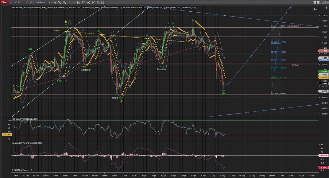 Moves lower than this neckline could trigger the alternative count for an extended Wave [ii] going towards the %76 levels of support, although it is still possible an extended Wave [v] or even a further extended Wave 5, with not much resistance levels to stop the move down (best seen in the 4Hour and Daily charts) .
