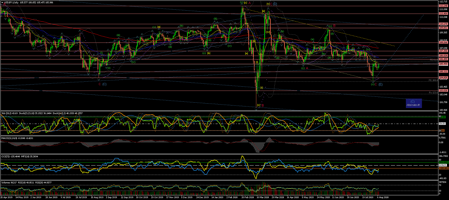 Note Alternate #1 for a possible larger Wave (4) developing across the 200EMA.