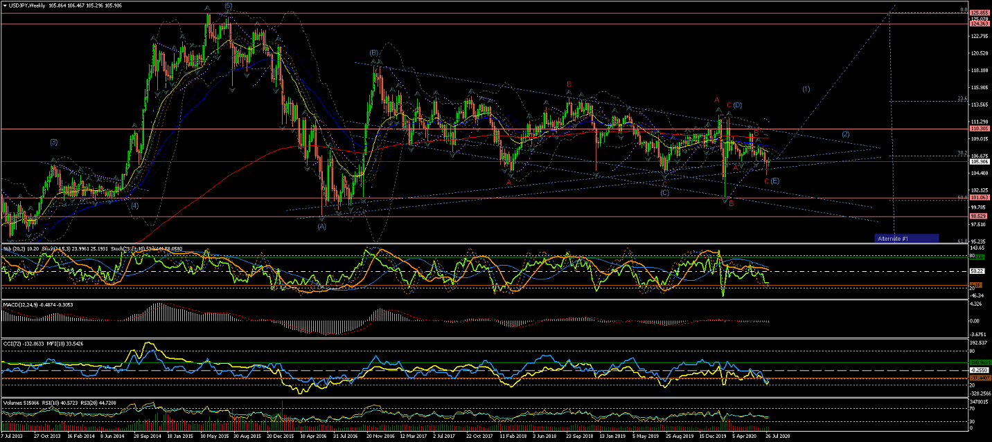 Weekly Chart is showing how previously marked Alternate #1 has been triggered for an extended Wave 2(red)