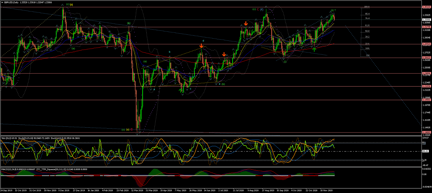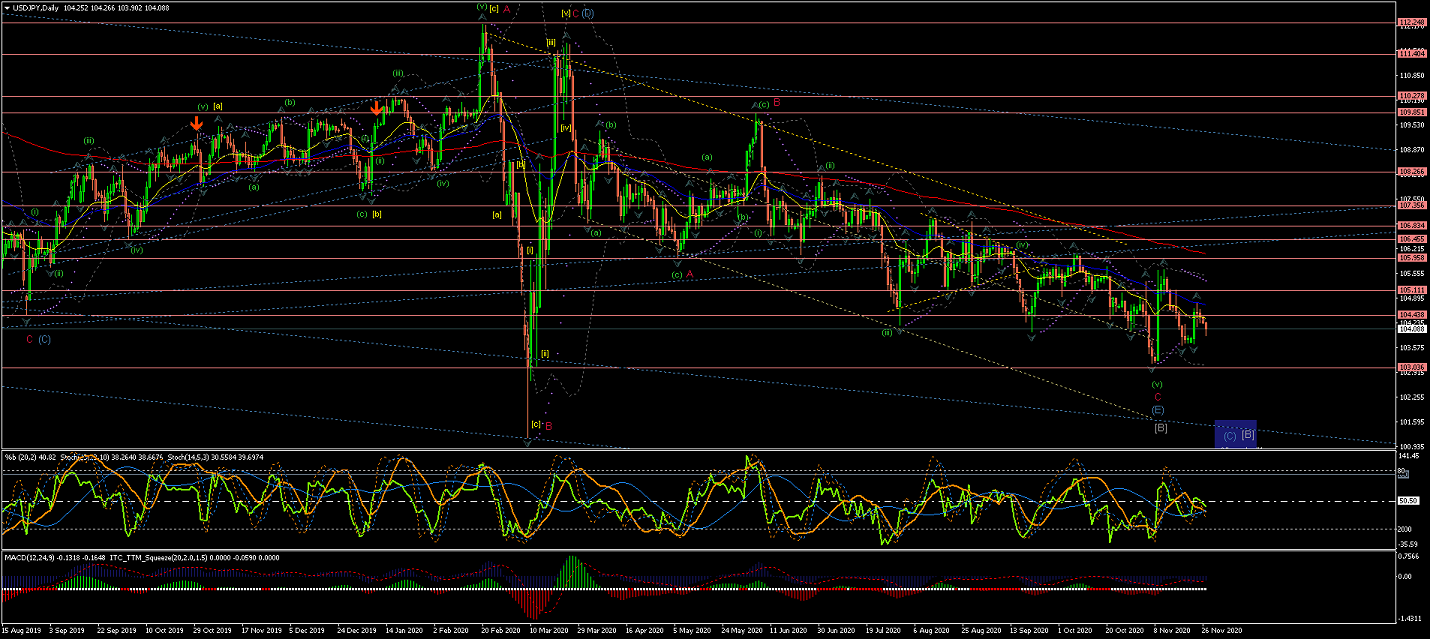 Daily Chart is showing Wave C(red) almost completed with only Wave [v] to confirm completion