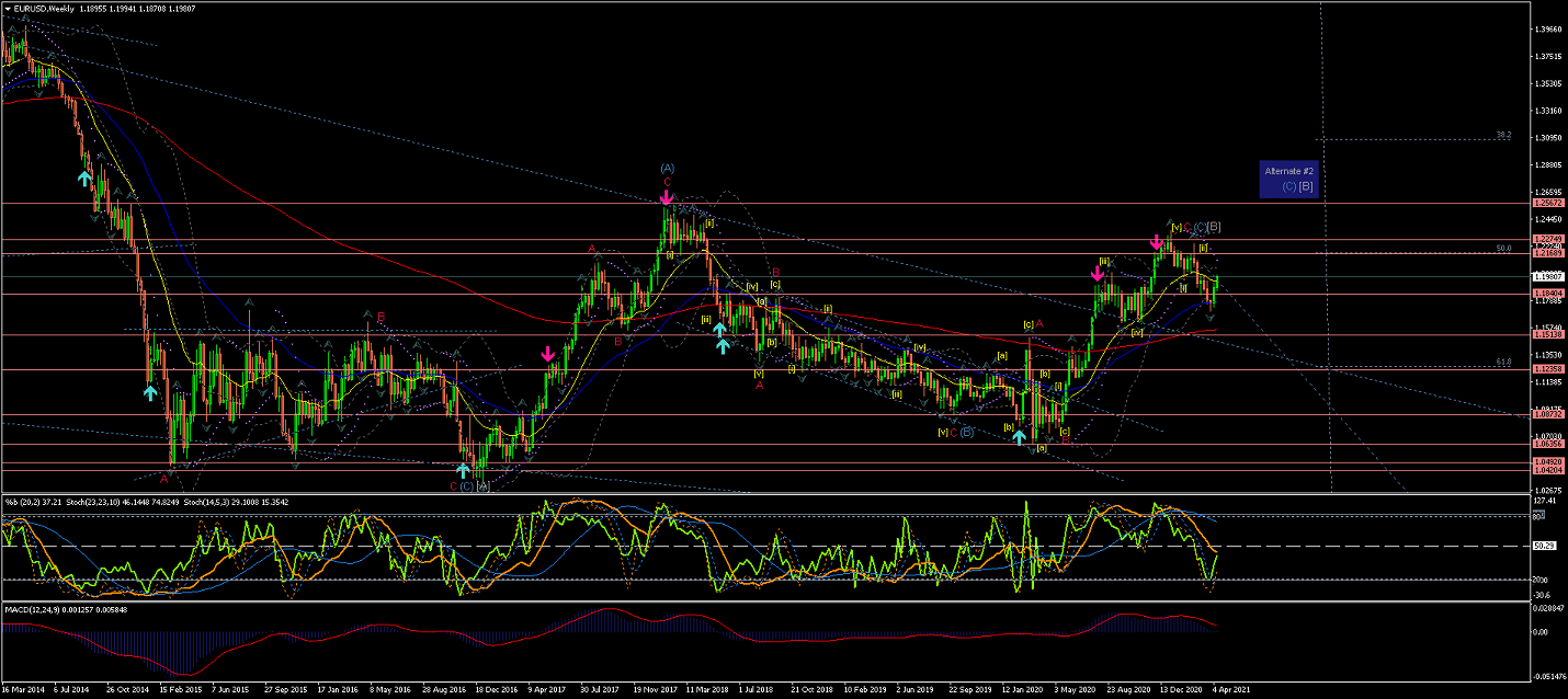 Weekly chart shows an extended Wave (4) correction crossing the 200EMA in a rather struggling way...