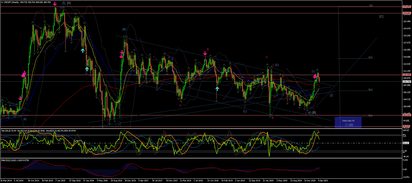 Weekly Chart is showing Wave (1) could be completed now that the price has crossed the upper long-term trendline...