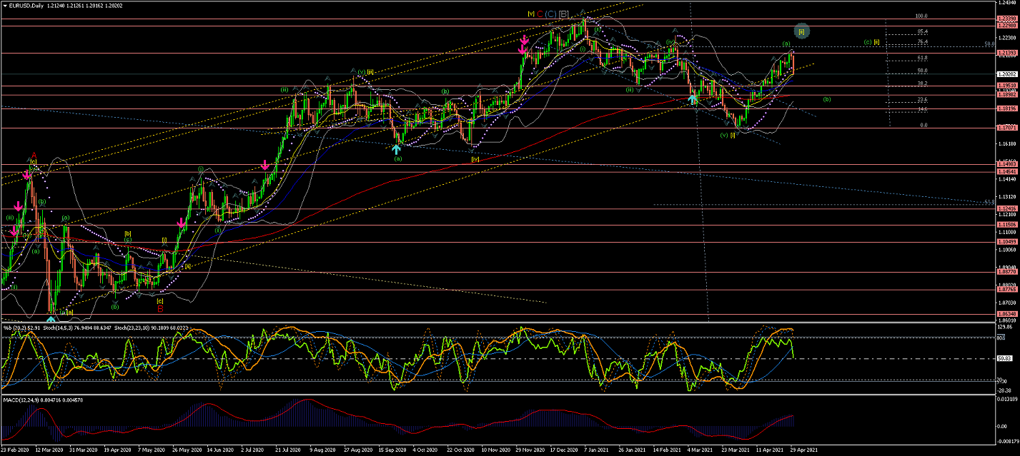Daily Chart is been showing Wave (1) should be completed as the price has now crossed the EMAs impulsively after nearly a year... let's see the price reaction to the long-term Trendline (blue)...