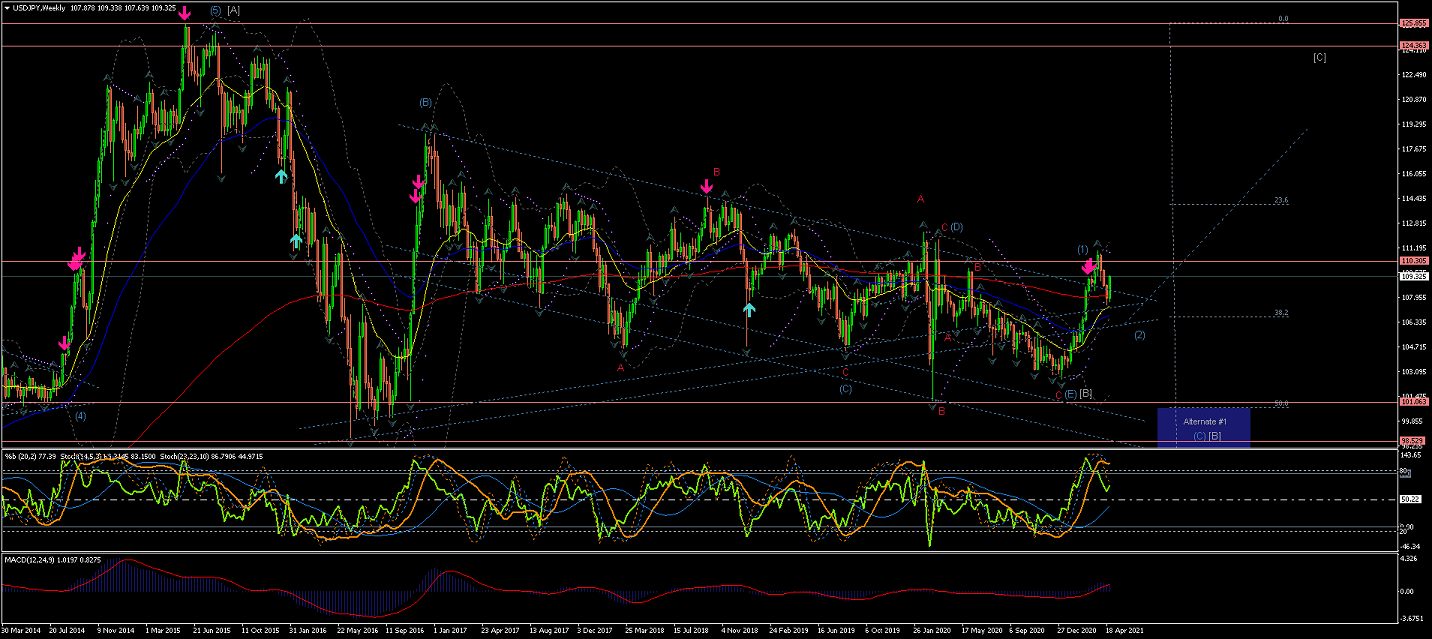Weekly Chart is showing Wave (1) could be completed now that the price has crossed the upper long-term trendline...