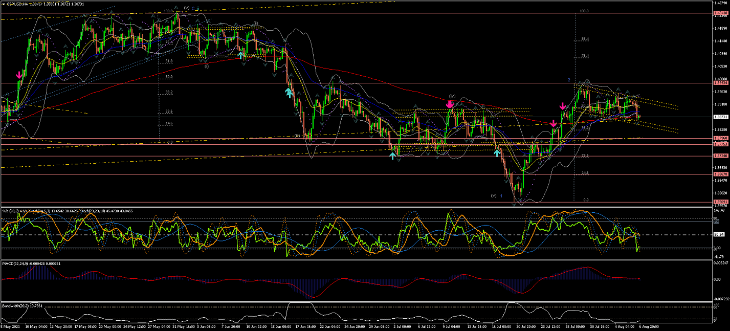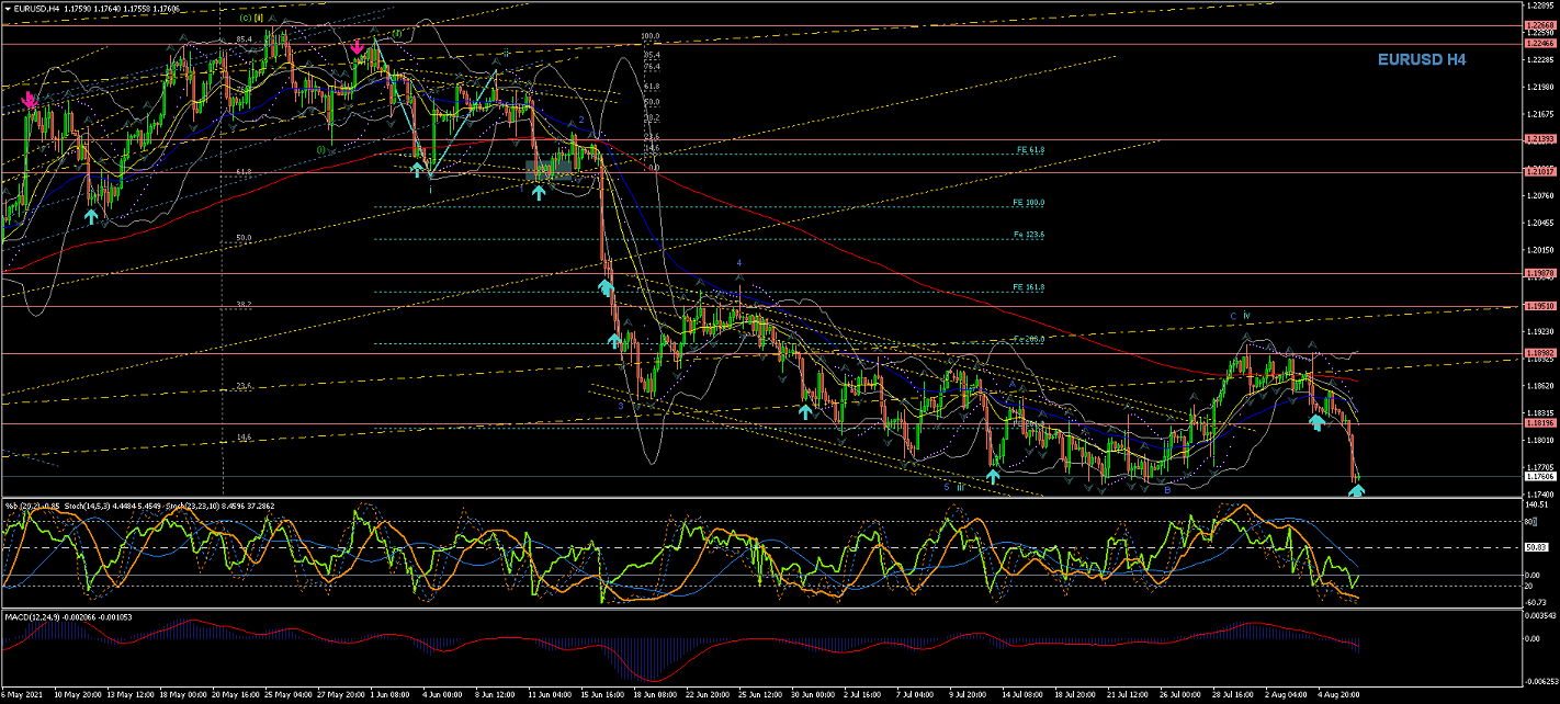 4Hour Chart shows the price falled below the EMAs for the potential start of Wave iii to the downside...