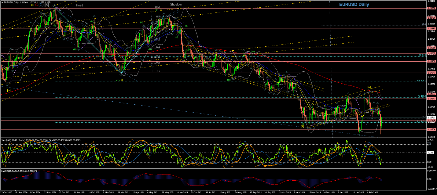 Daily Chart; Since Wave C(red) was completed, the price has temporally crossed the 200EMA and lower Trendline for the potential of a new long-term Trend to the downside... as Wave [i] and Wave [ii] are looking completed...