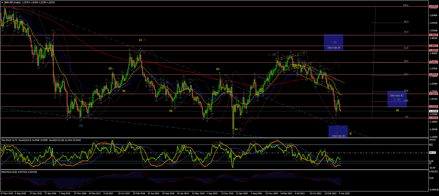 Weekly chart shows an extended Wave (4) correction crossing the EMAs in a rather struggling way...