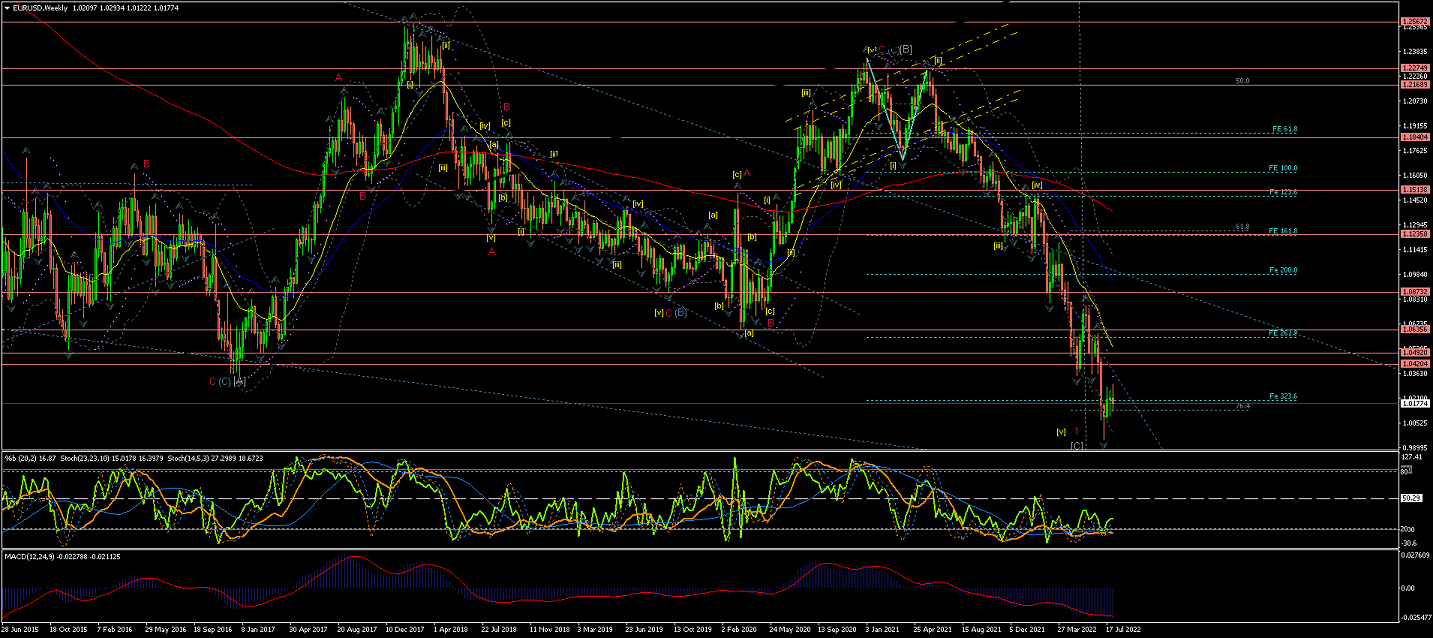 Weekly chart shows an extended Wave (4) correction crossing the EMAs in a rather struggling way...