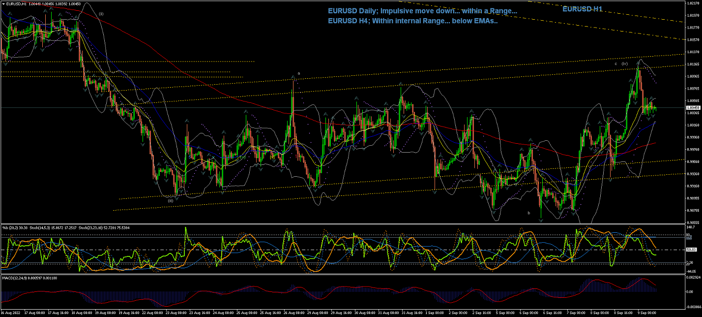 4Hour Chart shows impulsive moves to the downside... After what appears to be Wave a of Wave iii of Wave (i) of Wave 5(blue) completed within a Range... Now, watch out for completion of Wave iv of Wave (i) of Wave 5(blue), as the current count suggests...