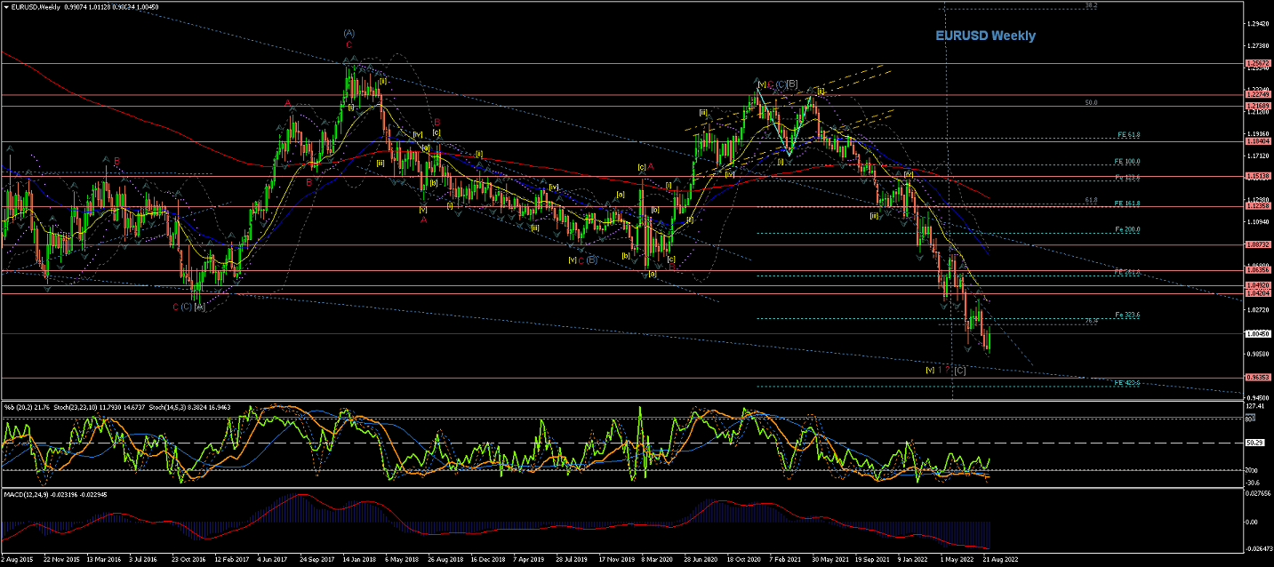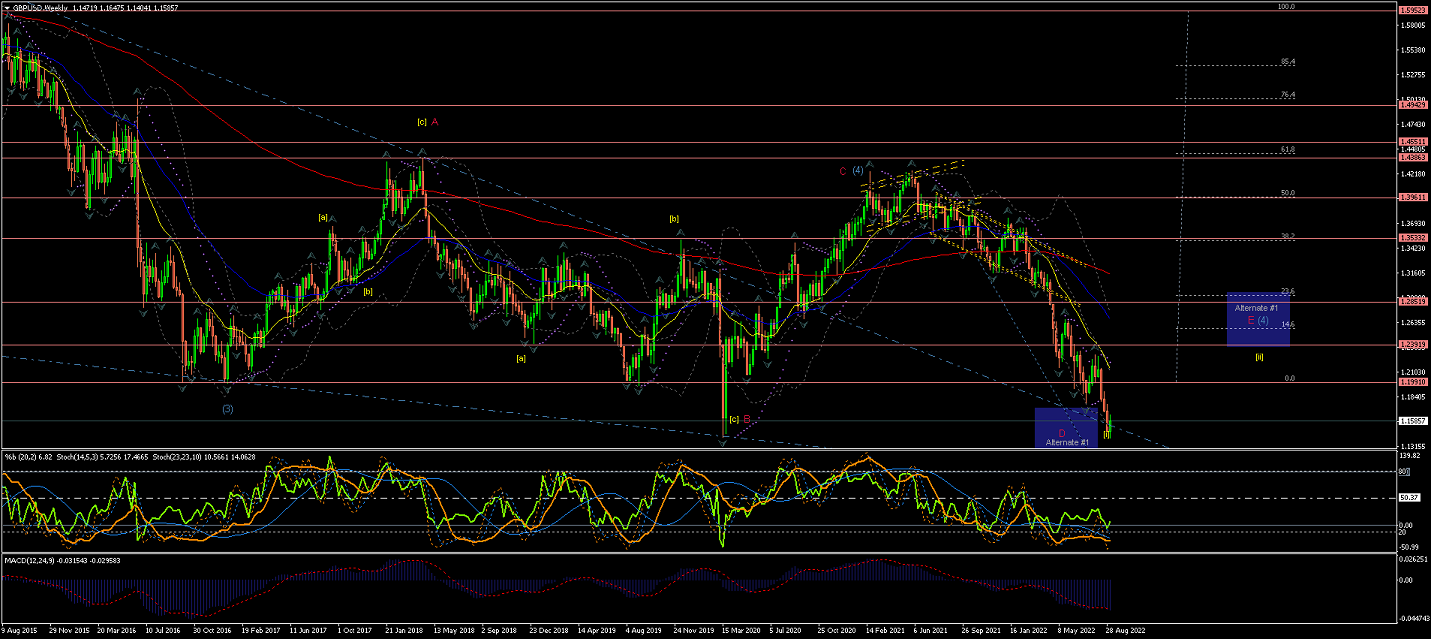 Weekly Chart is showing Wave (1) could be completed now that the price has crossed the upper long-term trendline...