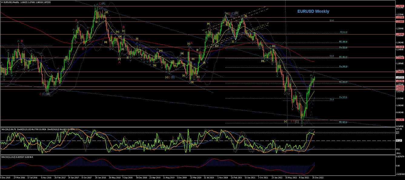 Weekly Chart is showing Wave (1) could be completed now that the price has crossed the upper long-term trendline...