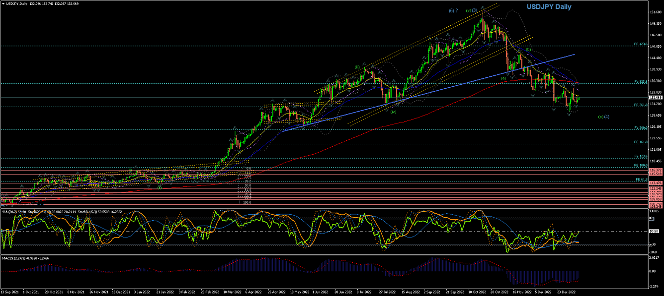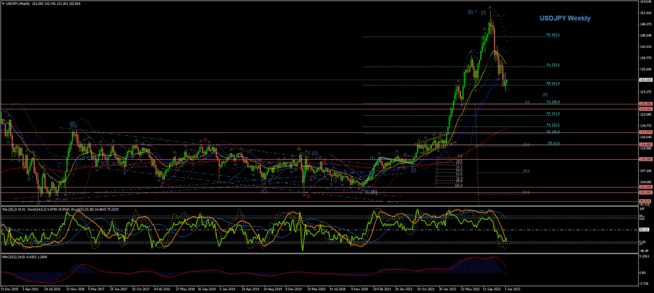 Weekly chart shows an extended Wave (4) correction crossing the EMAs in a rather struggling way...