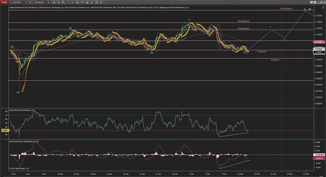 AUDUSD has still not produced great price action and seems that might have finish Wave (ii) now as it seems to have stalled at previous Wave [ii] support again.