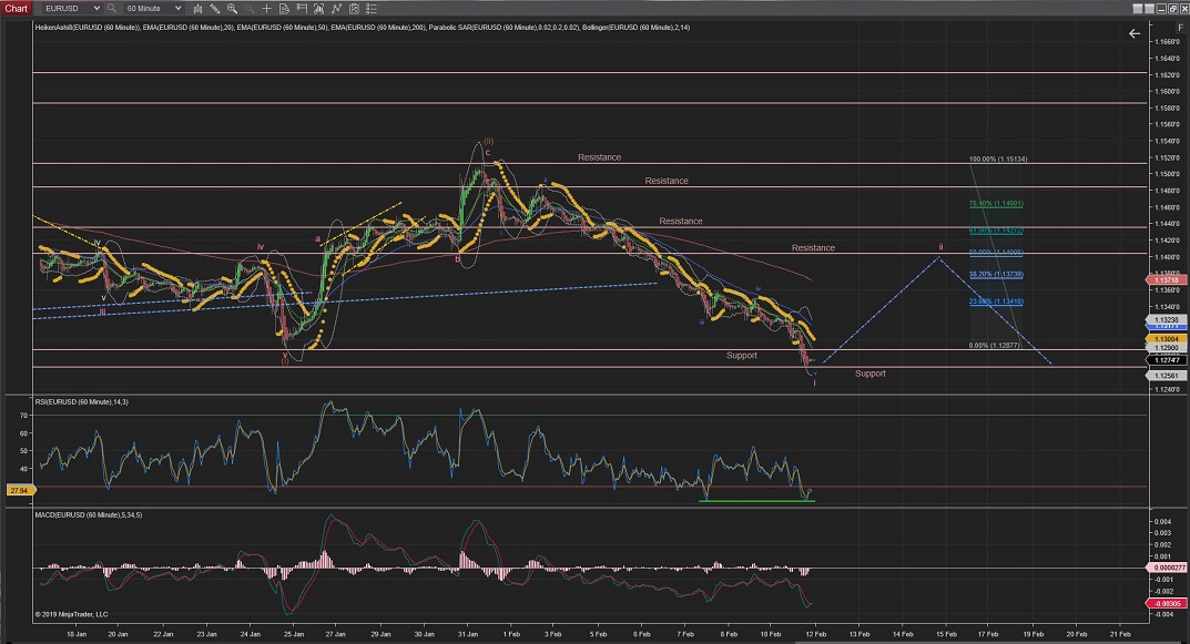 EURUSD broke the first levels of support made by Wave (i) and stopped at the next level of support suggesting a more bearish outlook.