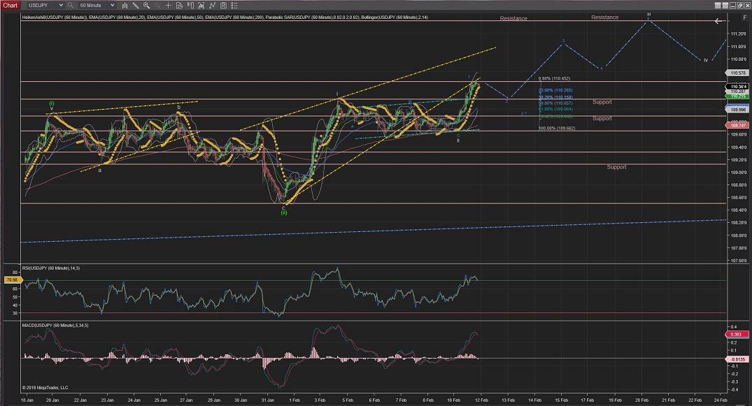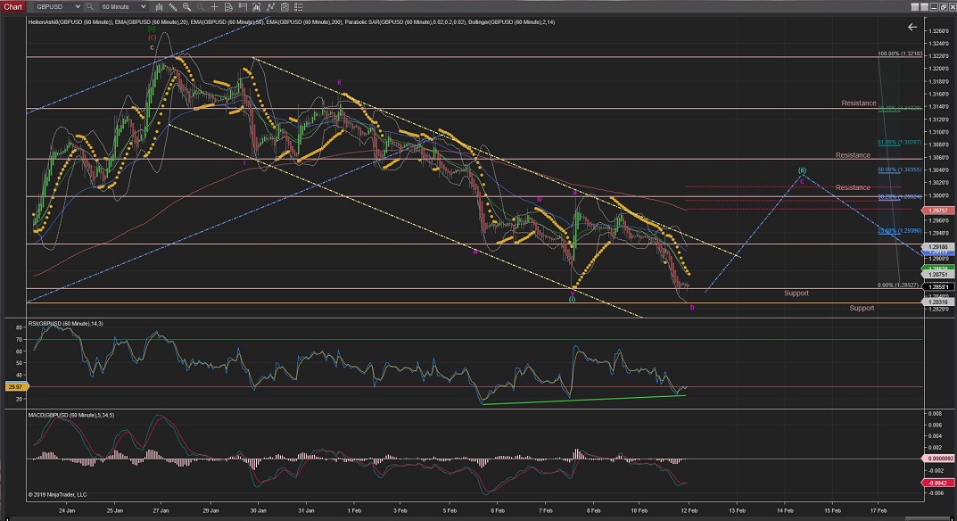 GBPUSD is going through Wave (ii) in a Flat (3,3,5) pattern and Wave b seem to have come to an end soon, so we should see 5 waves up to complete Wave (ii) around the %38 or %50 Fib retracement levels.