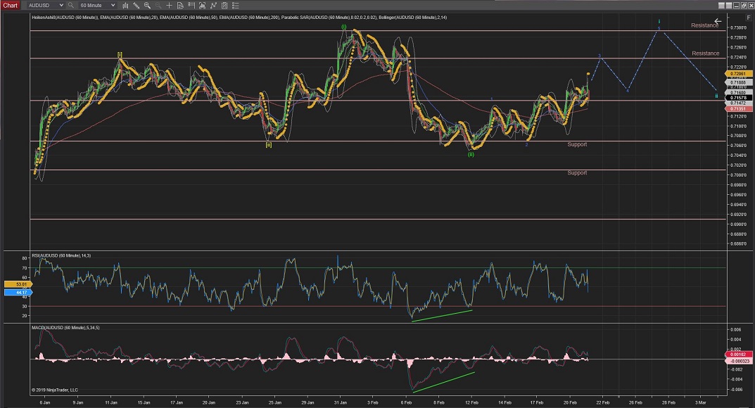 The support level (0.7057) made by previous Wave (ii) it is still holding this price for this current count to be valid.
