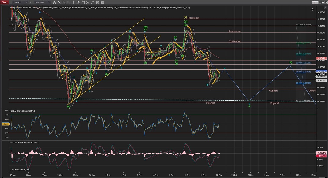 EURGBP is now going through Wave iv correction before the last drop lower into Wave v to complete Wave (i) of Wave [iii].