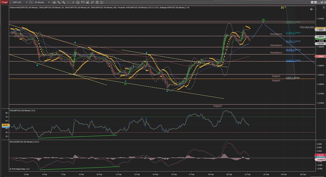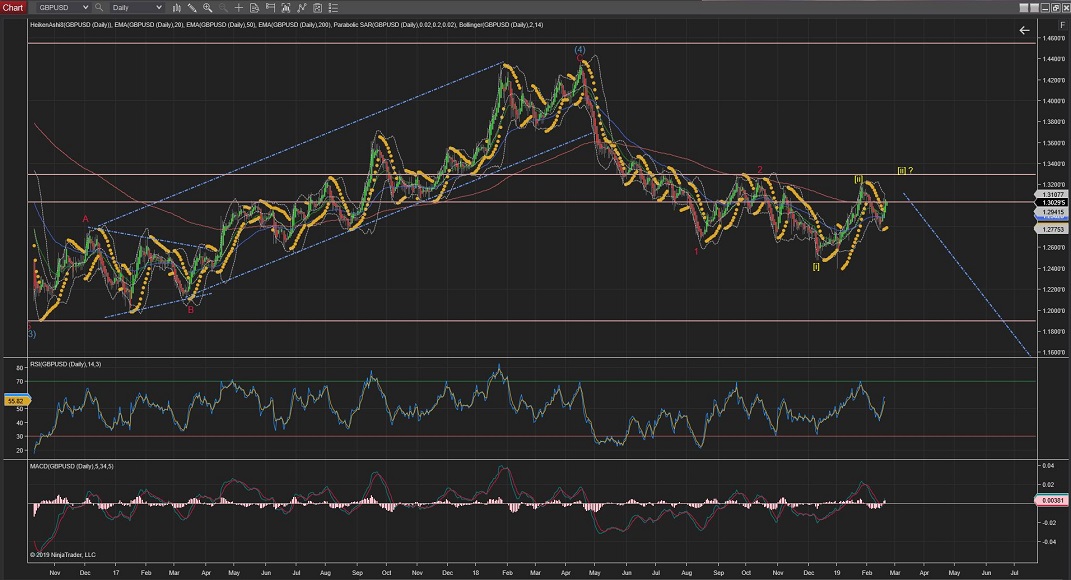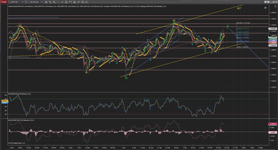 GBPUSD keeps raising and showing strong bullishness which puts more weight on the alternate count for a larger Wave [ii] (best seen on the Daily and 4Hour Charts).