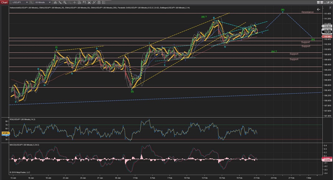 USDJPY is following a small trend on the way up, however, the lack of impulsive moves inclines more towards the alternate count of a current Wave (iv) developing which should end before previous Wave (i) high at 109.86