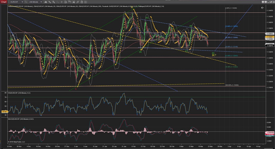 EURCHF triggered an alternative count and I find that a a contracting triangle fits the current Wave [ii] correction.