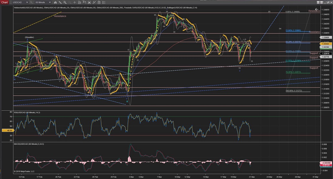 And still potential for heading up towards the 1.3500 area (best pictured in the daily and 4Hour Charts) for the %50 Fib retracement area, although could also go higher for %62, if it breaks through the trade line (yellow).