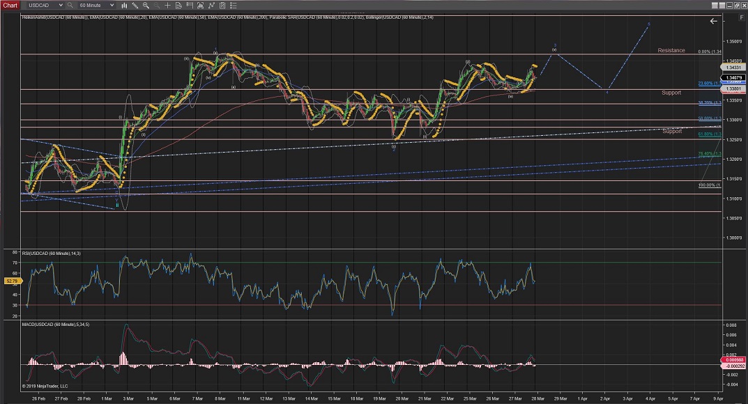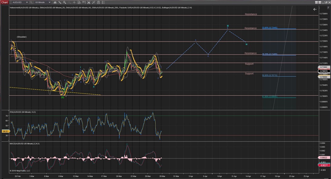 The 60Min chart shows to ha completed a large Wave 2 correction for Wave iii, which suggest that Wave 3 now should continue the impulsive moves higher towards the 0.7200 area if this count is to be valid.