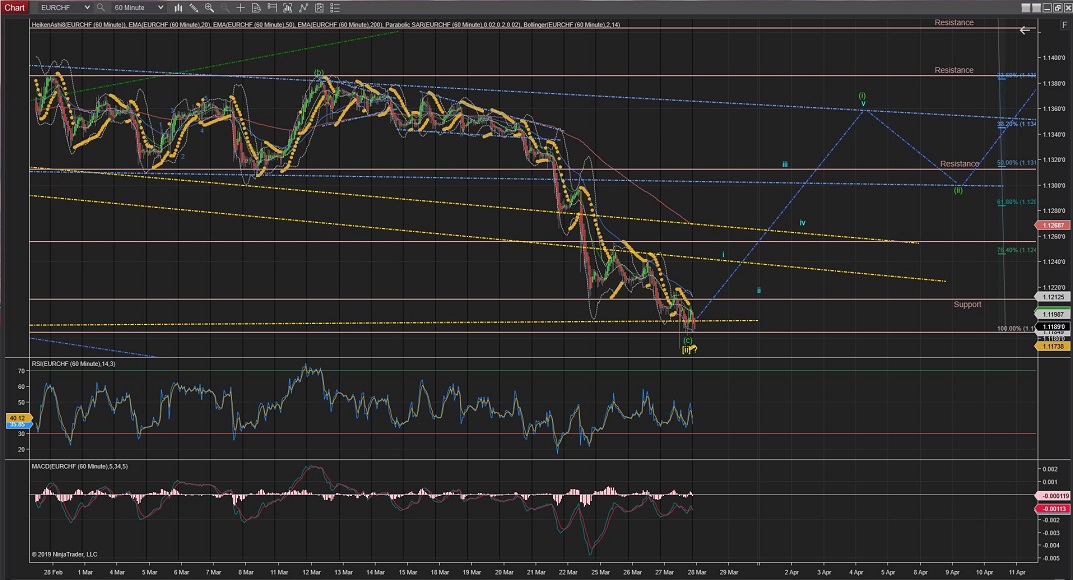 EURCHF is lingering around the 0Fib level of retracement, to complete Wave [ii].