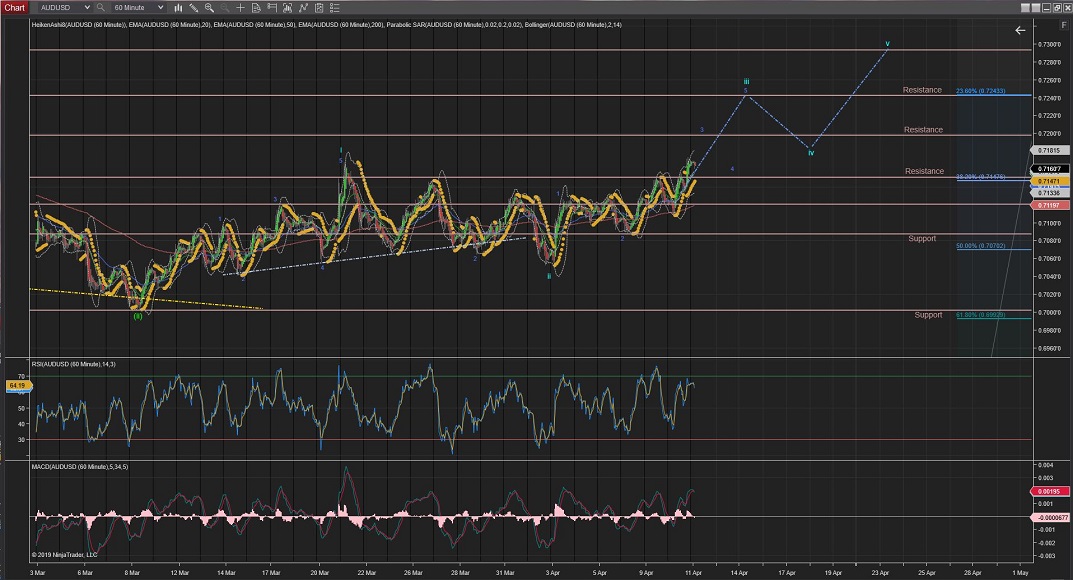 Next, Wave iii should continue the remaining of its 5 internal waves up, possibly tothe next resistance level around the 0.7200 area.