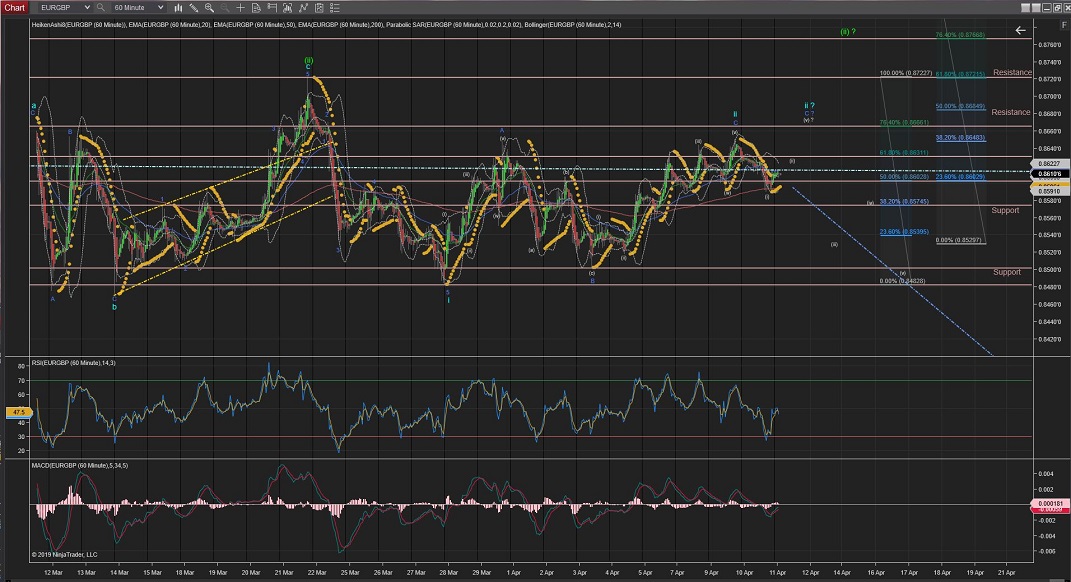 EURGBP Wave 2 is showing a ZigZag (5,3,5) correction possibly extending further to complete at the %76 Fibonacci retracement of Wave 1.
