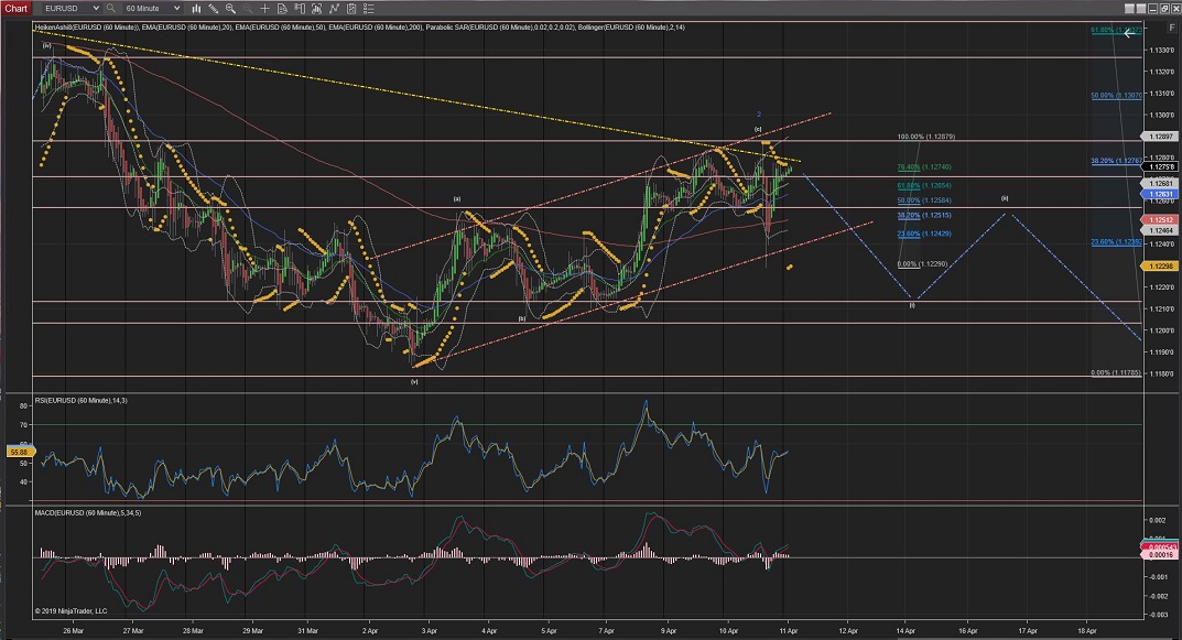 Further moves up from todays high at 1.12897 would imply Wave 2 is still in play for a greater retracement.