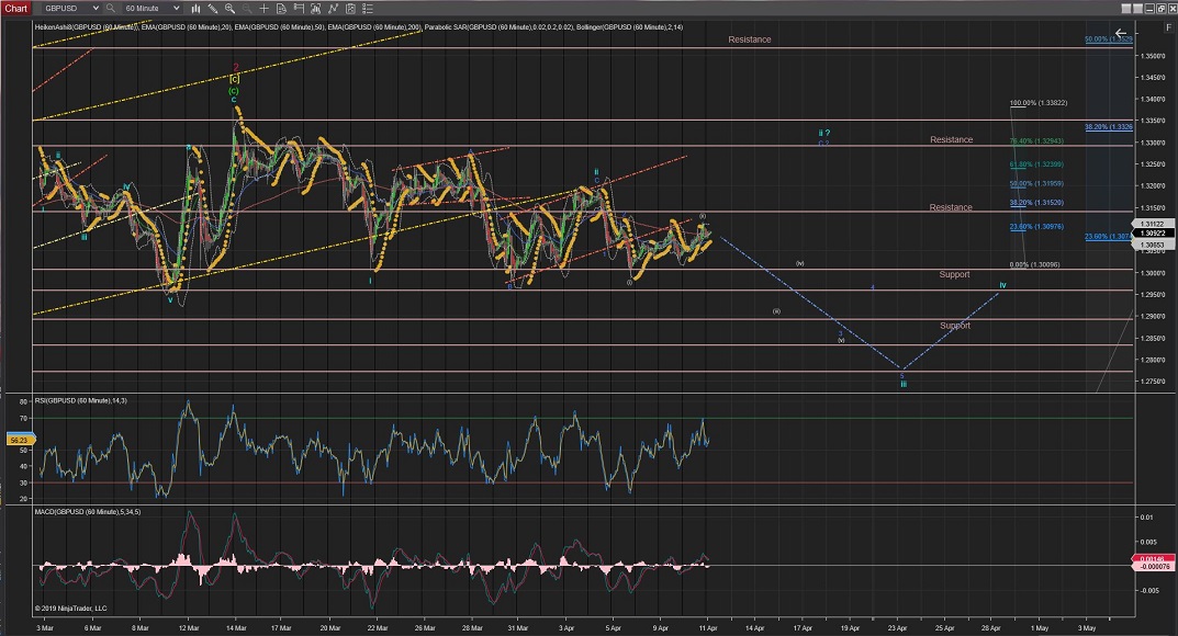 Still not out of the woods yet, so further moves lower than this neckline would trigger the alternative count for an extended Wave [ii] going towards the %76 levels of support, although it is still possible an extended Wave [v] or even a further extended Wave 5, with not much resistance levels to stop the move down (best seen in the 4Hour and Daily charts) .
