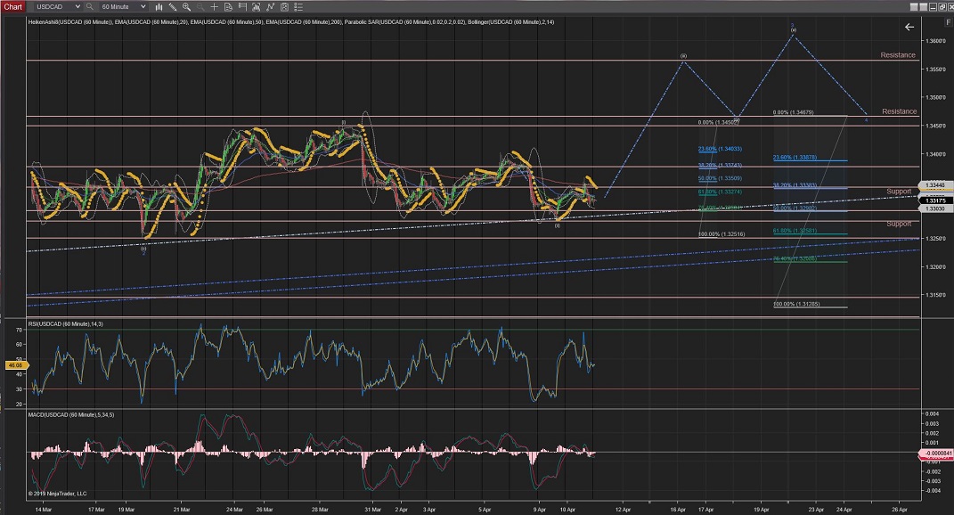USDCAD correction of Wave (ii) completed at the %76 Fib levels.