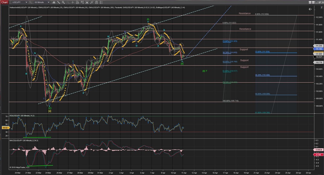 USDJPY Wave (ii) correction reached very near the %50Fib Retracement of Wave (i) in 5 Waves down.