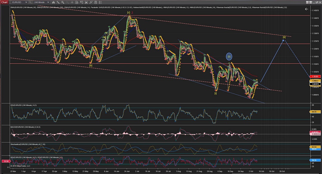 GBPUSD in the 4Hour Chart is showing the initial Wave (i) of Wave [iii] might have started; Leaving Wave [ii] completed at between %38 and %50 retracement of Wave [i].