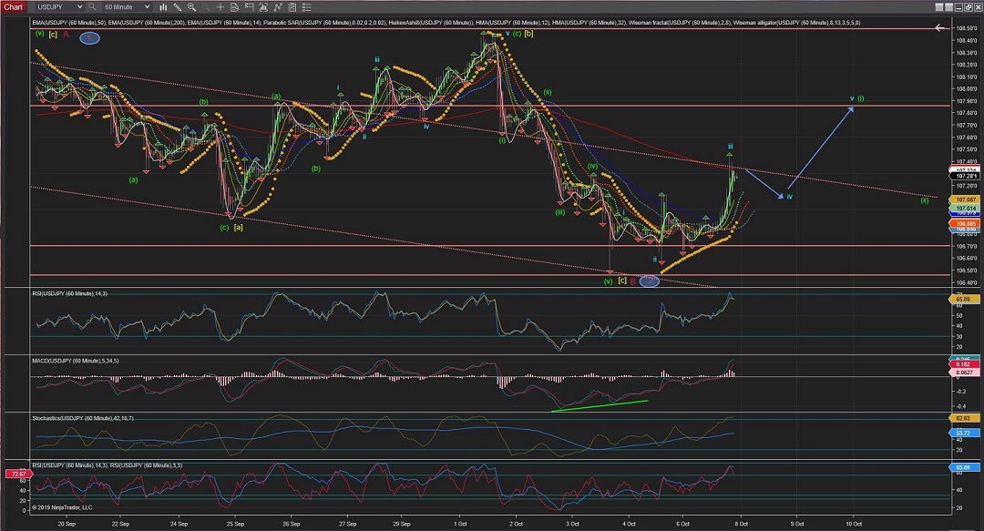 The 60Min Chart is showing to have completed Wave iii of the first Wave (i) up.