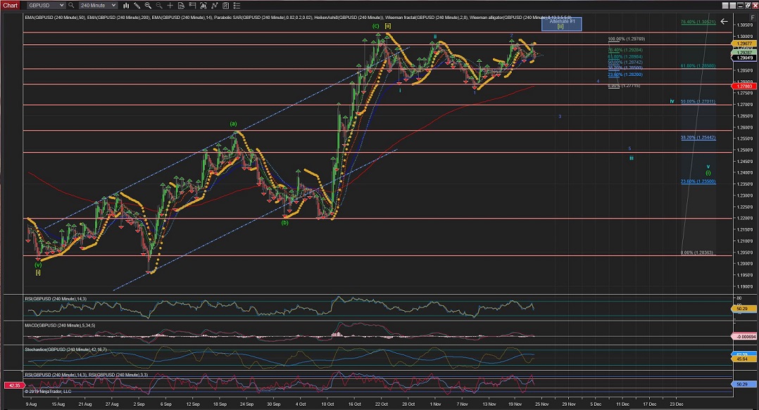 The 4Hour Chart shows Wave i with 5 internal waves very impulsive to the downside and a Wave ii that might have found completion at just below the %62 retracement level.