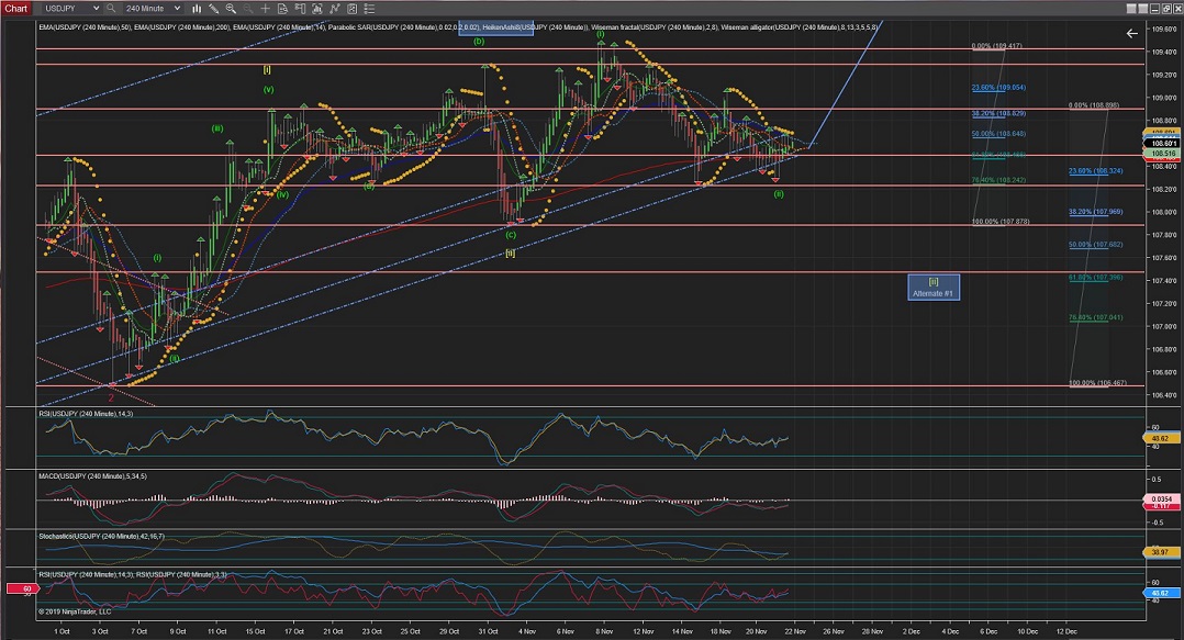(The Alternate #1 count is still on the cards for extended Waves [i] and [ii], should the price drop below the 107.87 price (0 retracement level))
