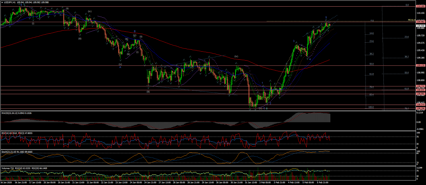 60Min Chart shows in more detail the 5 waves up. And a possible leading diagonal Wave 5(blue) completing.