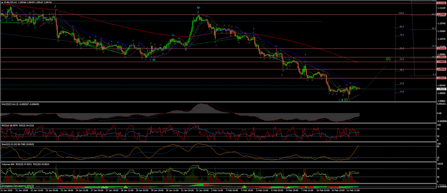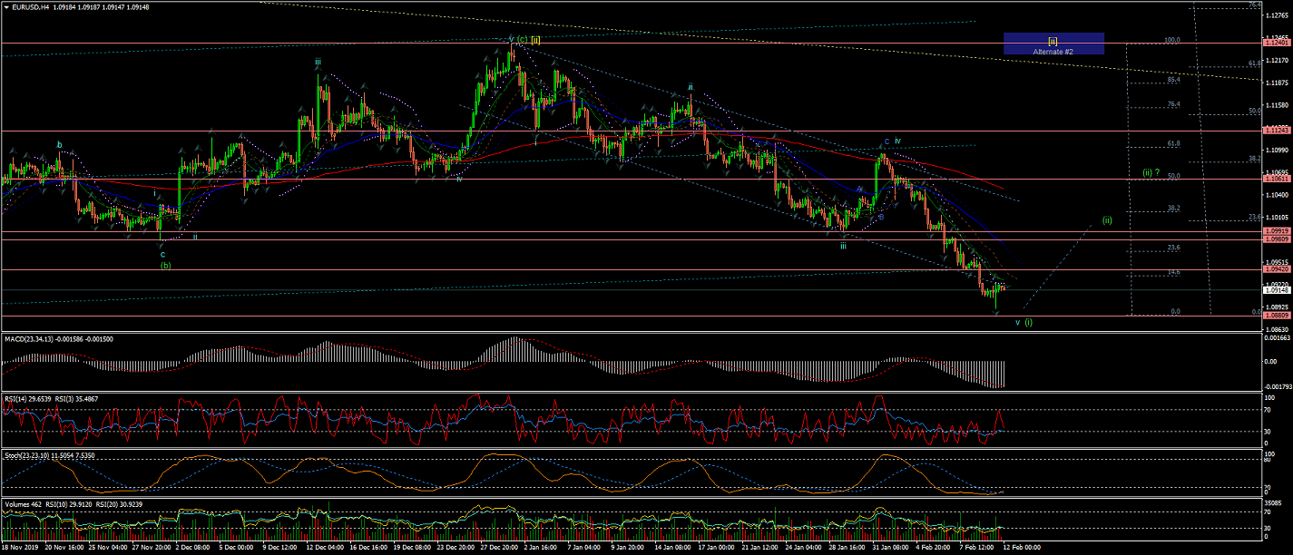 4Hour Chart is showing Wave v of Wave (i) been extended pass the lower trendline towards the next big level of support at 1.08809