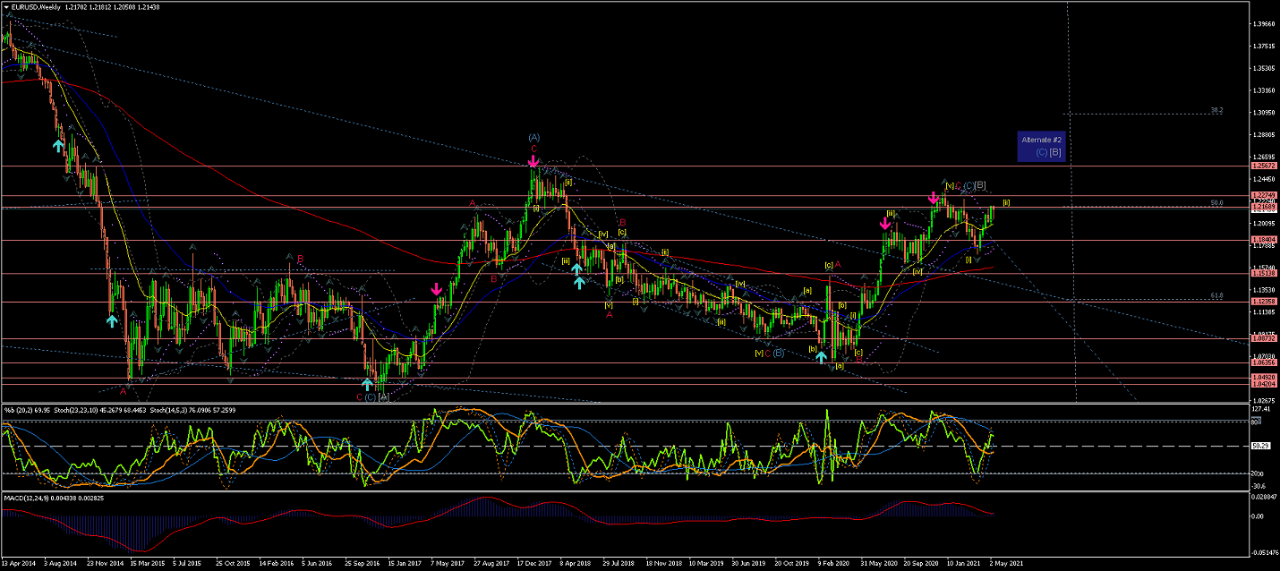 Weekly chart shows an extended Wave (4) correction crossing the EMAs in a rather struggling way...
