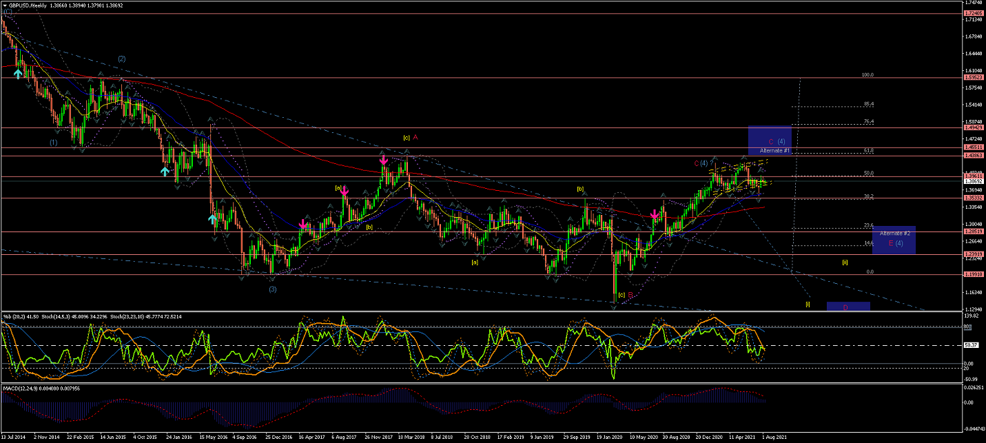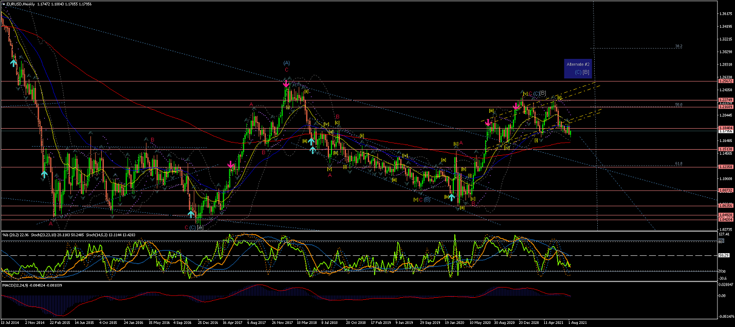Weekly chart shows an extended Wave (4) correction crossing the EMAs in a rather struggling way...