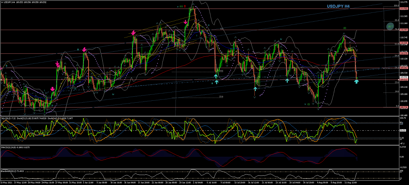 4Hour Chart shows the price falled below the EMAs for the potential start of Wave iii to the downside...