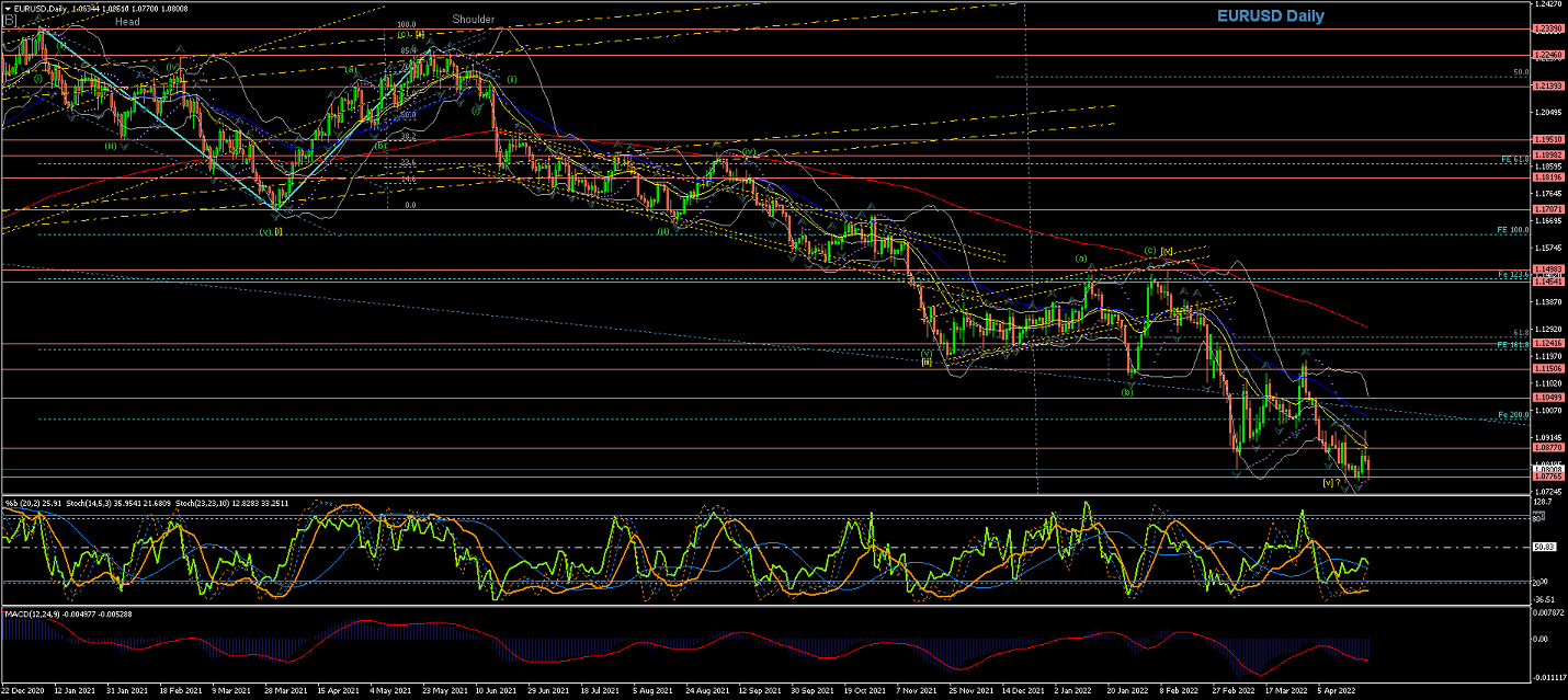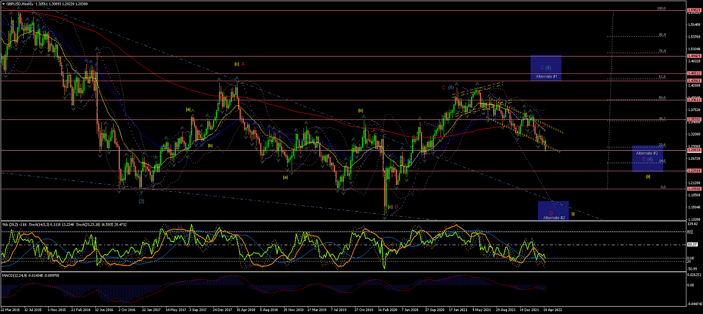 Weekly chart shows an extended Wave (4) correction crossing the EMAs in a rather struggling way...