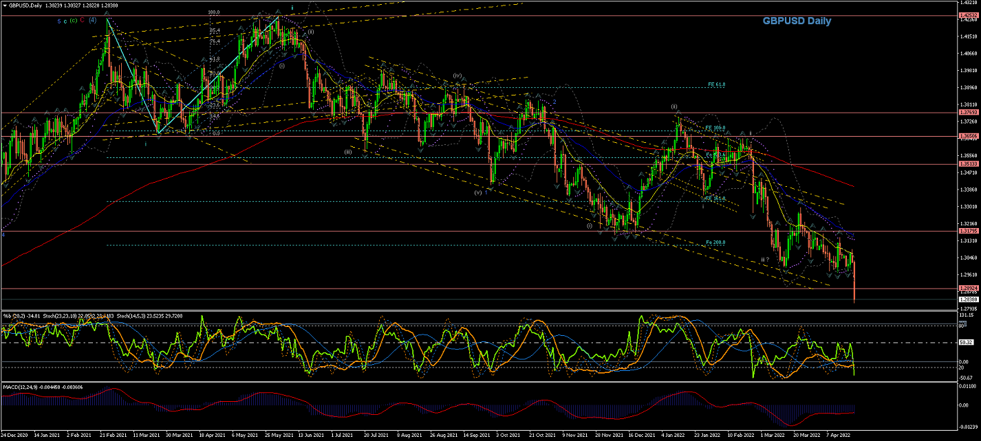 Daily Chart; Since Wave C(red) was completed, the price has temporally crossed the 200EMA and lower Trendline for the potential of a new long-term Trend to the downside...