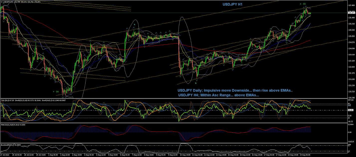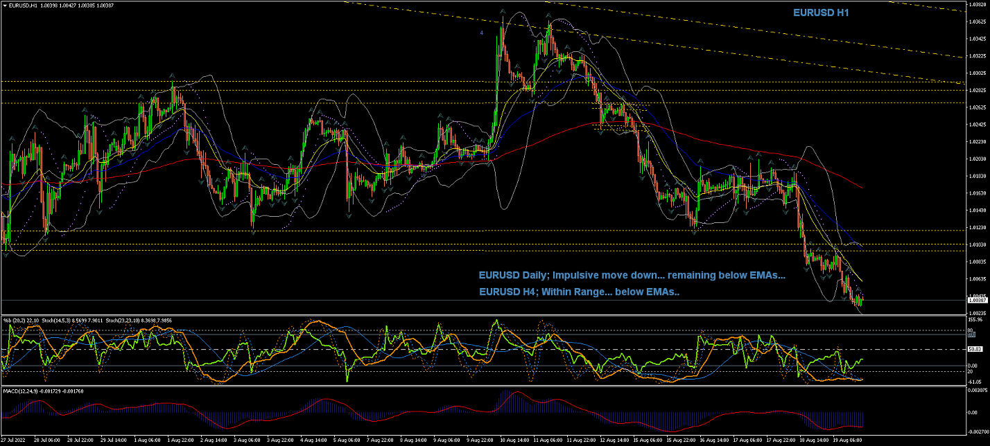 4Hour Chart shows impulsive moves to the downside... After what appears to be Wave a of Wave (a) completed within a Range... Now, watch out for completion of Wave (b) of Wave 4(blue), as the current count suggests...