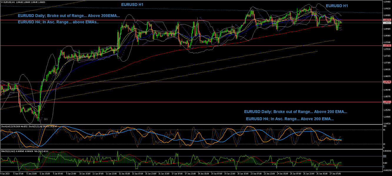 4Hour Chart shows the price raising above the EMAs in a series of Waves 1 and 2... Looking to breakout of the current Ranges; which can bring the price much higher...