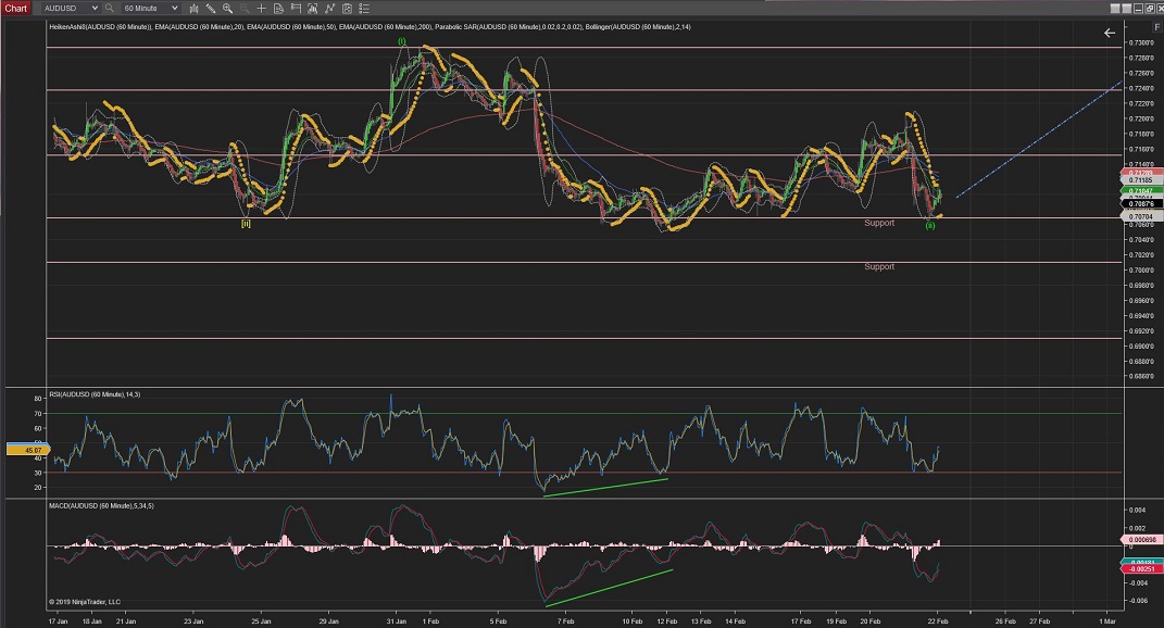 I have labelled the move as an extended Wave (ii), as it has not broken previous Wave (ii) levels of support (0.7057) and, hence that count remains valid.